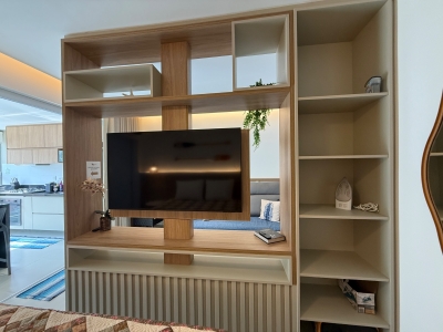 O apartamento está totalmente mobiliado, com marcenaria de alto padrão e móveis planejados em todos os ambientes. Todos os cômodos são climatizados com ar-condicionado, incluindo os dormitórios e a sala. Basta entrar e aproveitar – tudo foi pensado nos mínimos detalhes para oferecer conforto e beleza.