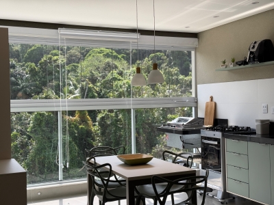 O banheiro com ventilação natural garante frescor e bem-estar. A varanda gourmet, com fechamento em vidro, amplia o espaço e proporciona privacidade para momentos de lazer. Posicionado para o sol da manhã, o studio é iluminado e agradável o dia todo.